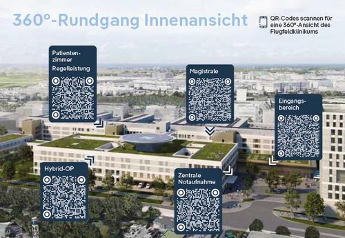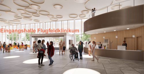 Aufwendige Visualisierungen ausgewählter Bereiche bieten besonders interessierten Bürgern einen spannenden Blick in das fertige Flugfeldklinikum.