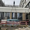 Großer Aufwand für die zwei Kältemaschinen: damit die Anlagen ins Gebäude gebracht werden konnten, waren ein Kran und zweieinhalb Tage Arbeit notwendig. Ein Gerät wiegt 8.190 Kilogramm und ist 4,5 Meter lang und zwei Meter hoch.