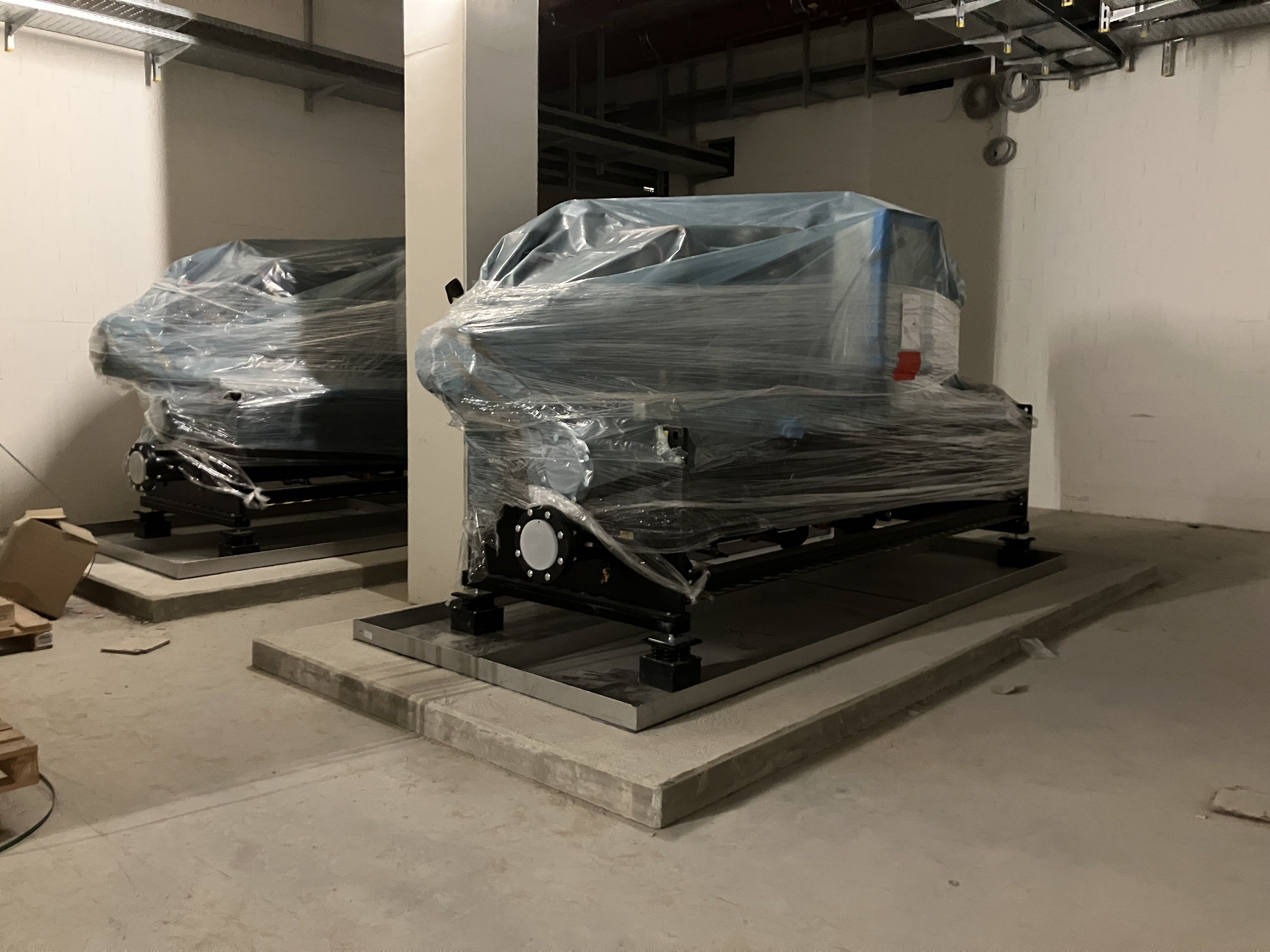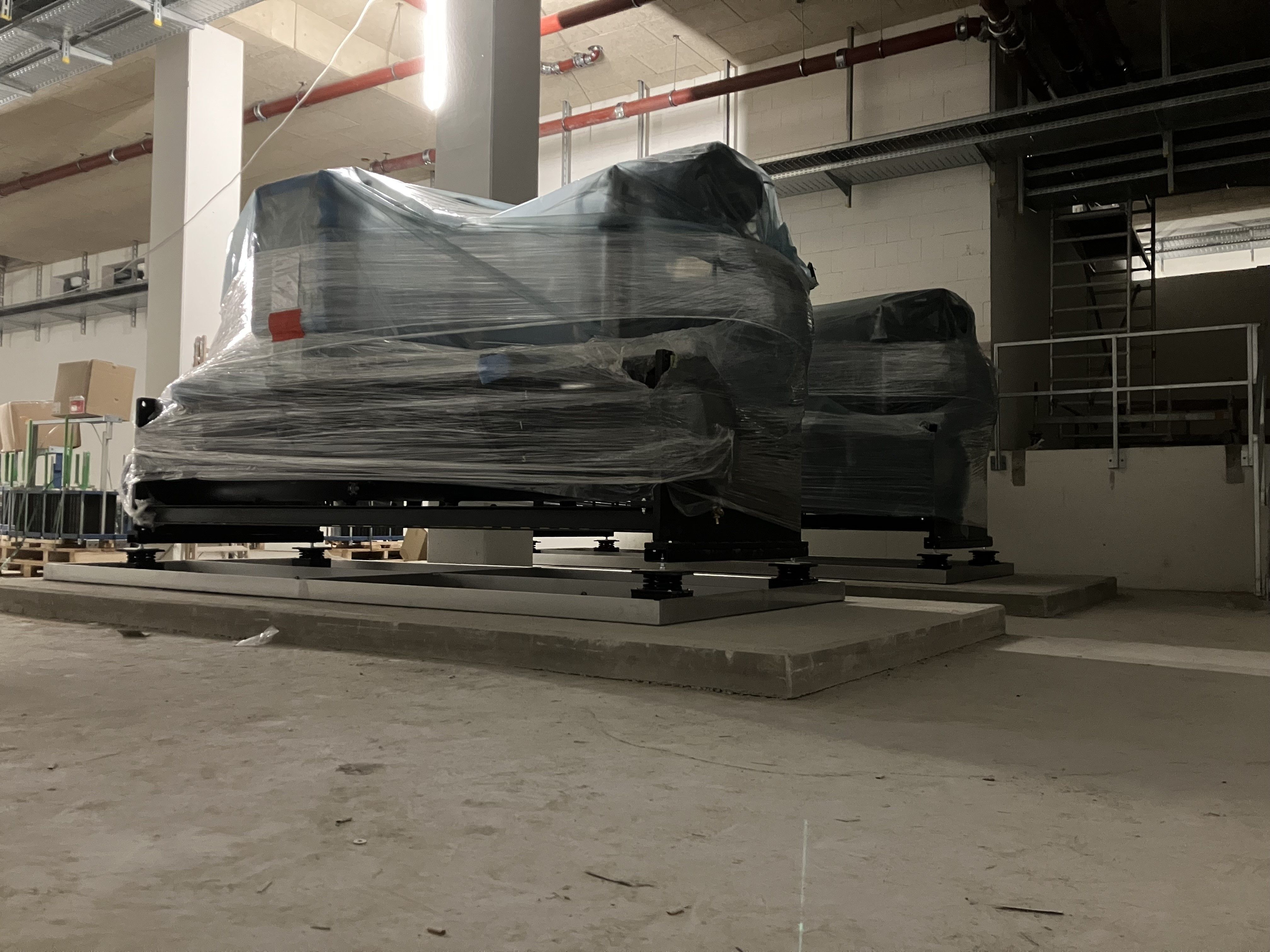Die Einbringung der Maschinen musste bereits jetzt erfolgen. Denn wenn die Installationen im Untergeschoss erfolgt sind, ist kein Platz mehr vorhanden, um die schweren und großen Geräte zu bewegen.